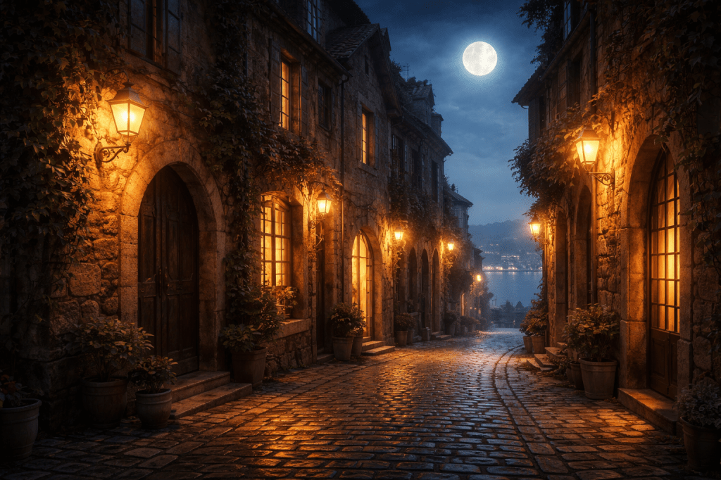 Era in vacanza in una piccola, bellissima e quasi magica cittadina sulla riva dell’oceano. Fin dal suo arrivo aveva avuto la strana sensazione di conoscere quel luogo intimamente, come se vi fosse già stata prima. Le antiche strade acciottolate, con le pietre levigate dalle innumerevoli vite che vi erano passate sopra nel corso dei secoli, sembravano ricordare ogni passo. Gli ornamenti consumati e i gargoyle sulle facciate degli edifici sussurravano storie di tempi lontani — storie di dolore e perdita, ma anche di gioia e di festa.