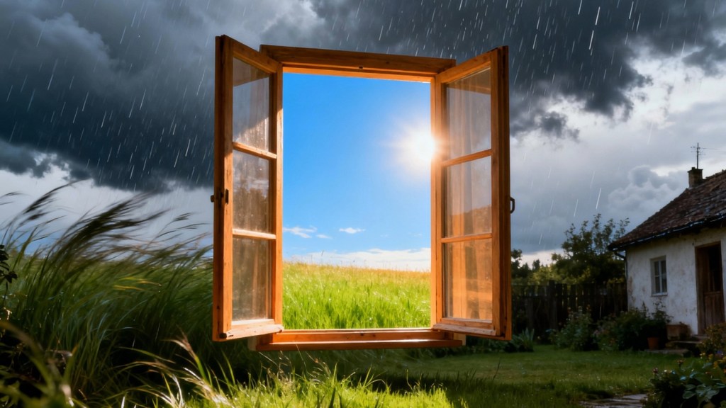 Decise di spingersi oltre. Aprì di nuovo la porta e uscì sotto la pioggia, lasciando che la inzuppasse fino all’osso. Poi tornò in camera da letto — quella che, senza dubbio, aveva il tempo migliore. Aprì la finestra il più possibile e ci si arrampicò attraverso. Si ritrovò sull’erba perfettamente asciutta del suo giardino, sentendo i raggi caldi del sole asciugare le gocce sulla sua pelle.